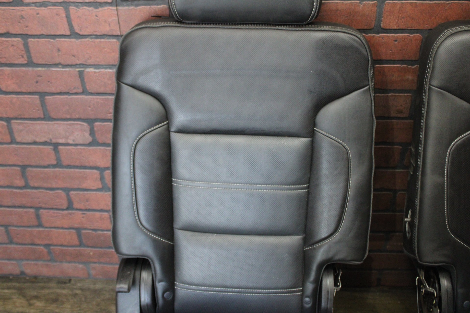 Heated black leather second row seat set taken out of a 2017 GMC Yukon Denali. In good working order, missing seatbelts and armrests. Everything pictured is what comes with them.