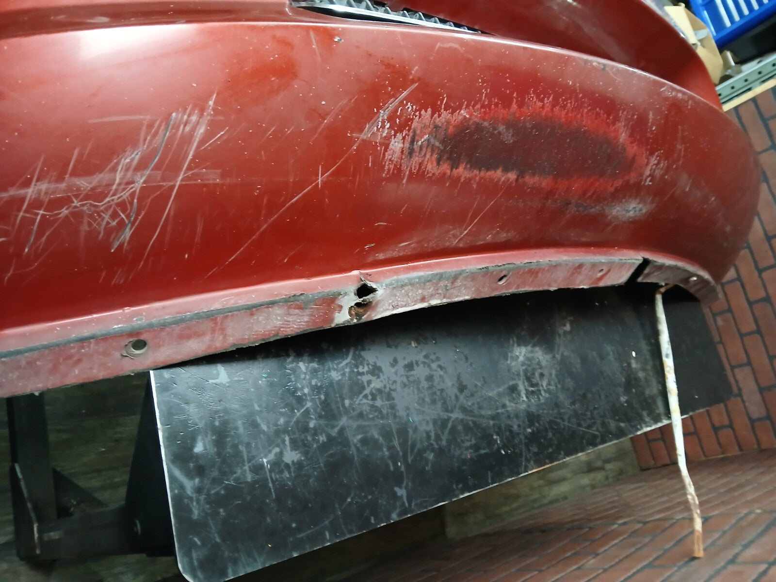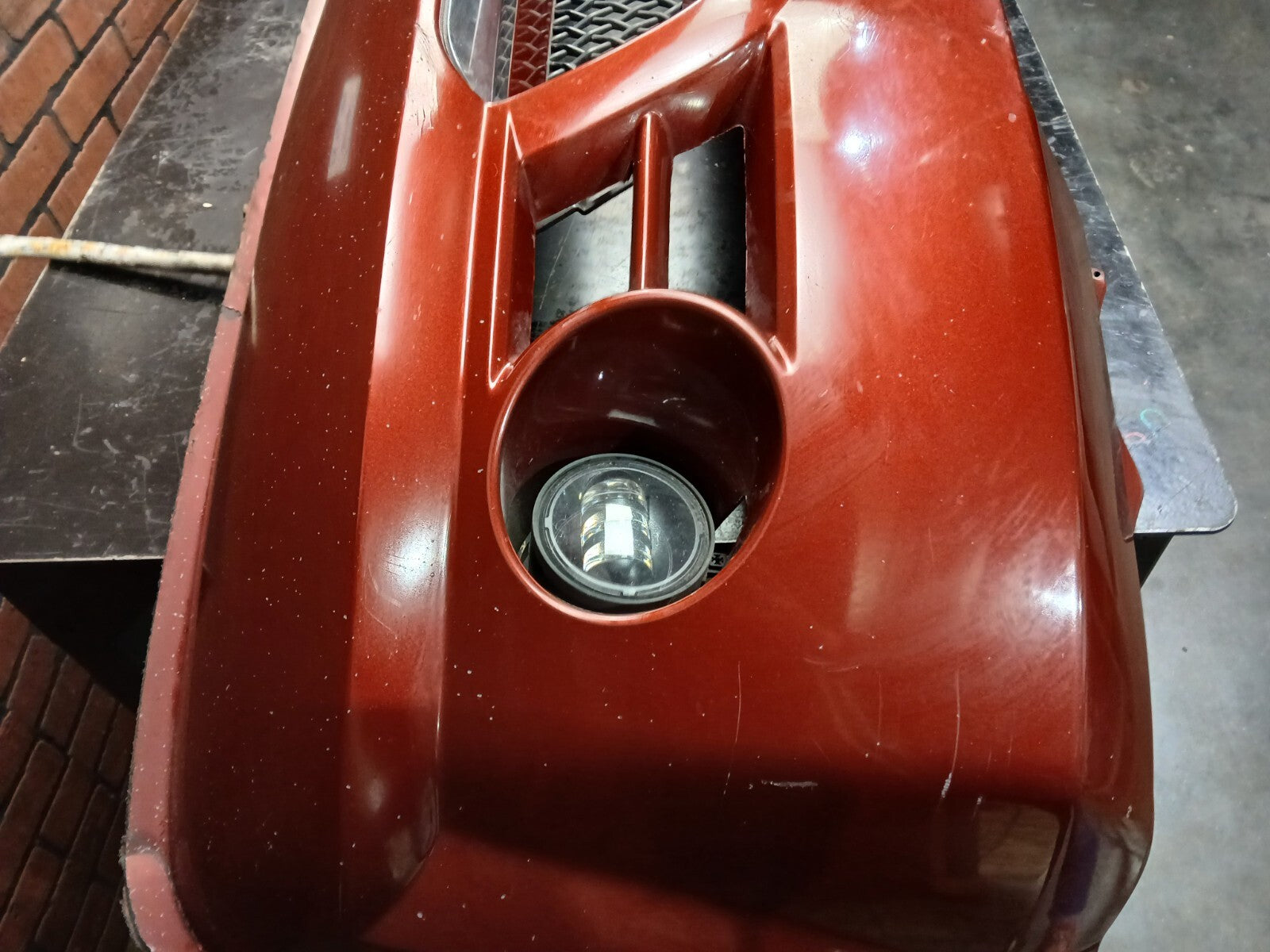 This bumper is lightly damaged. Please see pics! We want to accurately represent this bumper. This front bumper includes fog lights, grill, and reinforcement.